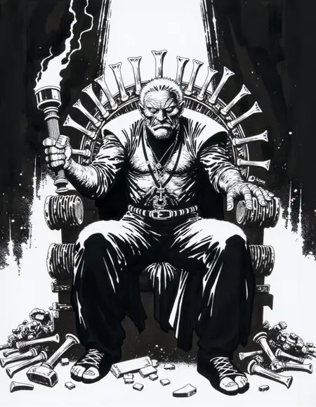 이 스타일은 _Sin City_의 대담한 미학에서 영감을 받았으며, 흑백 대비와 날카로운 정밀도를 강조합니다. 프랭크 밀러 같은 창의적인 예술가들의 작품을 학습하여 훈련된 이 LoRA는 무뢰한 감성과 그래픽 노블의 영향을 활용합니다(다만 위대한 프랭크 밀러의 작품에 비하면 미미합니다). 역동적인 구도와 정교한 선이 액션, 드라마, 긴장감을 극대화합니다. 선택적 색상의 번짐은 _Sin City_의 상징적인 빨강, 노랑, 파랑 사용을 연상시키며 핵심 요소에 집중을 줍니다. 이 스타일은 영화적인 프레임링, 그래픽 노블의 거칠고 생생한 느낌, 그리고 일종의 초현실주의를 융합하여 강력하고 시각적으로 인상적인 작품을 창조합니다.