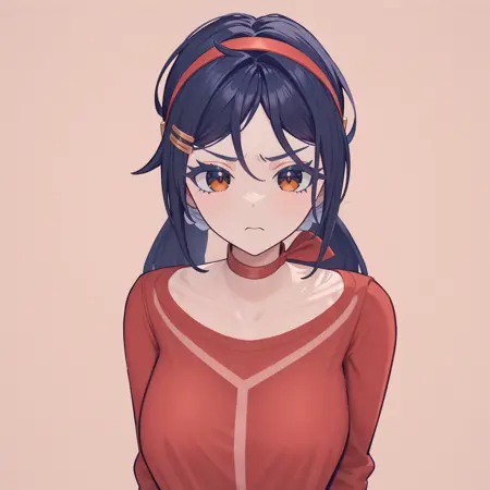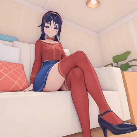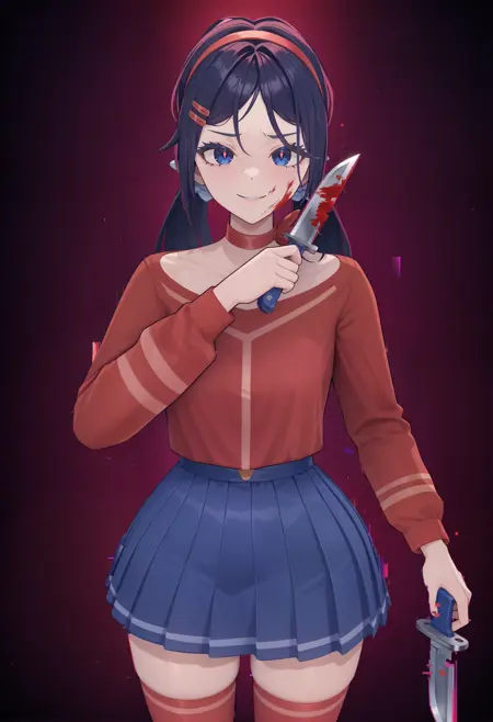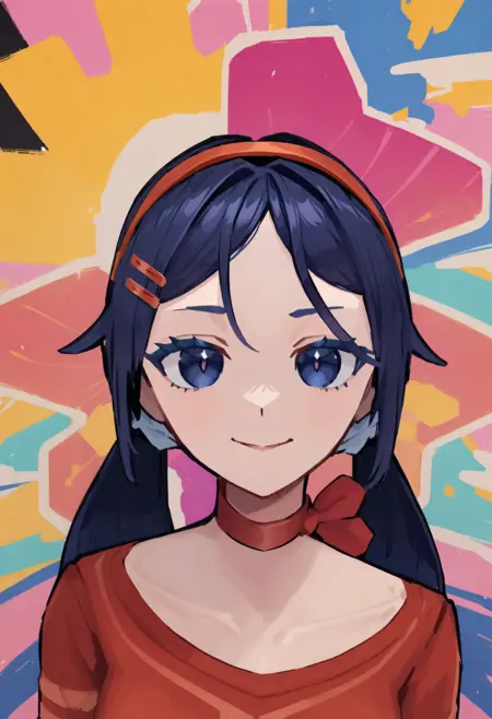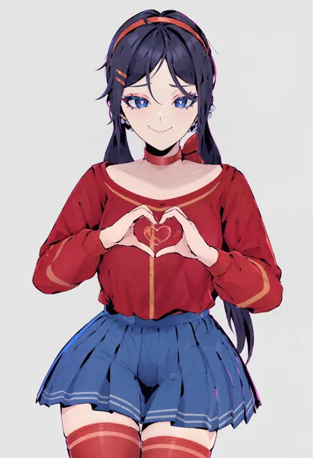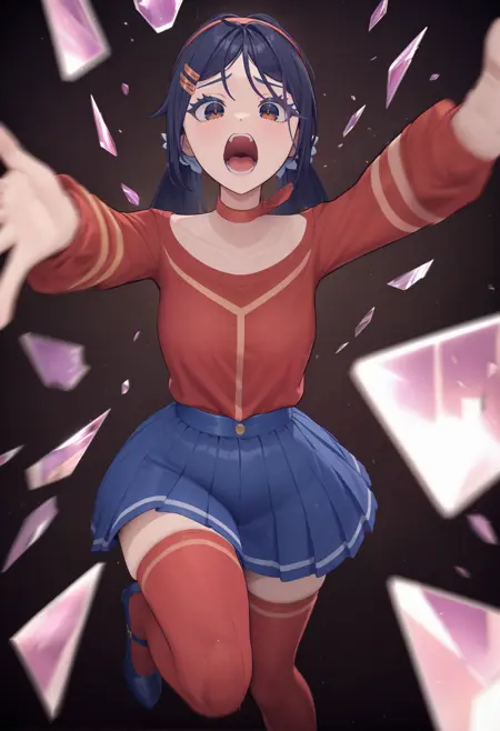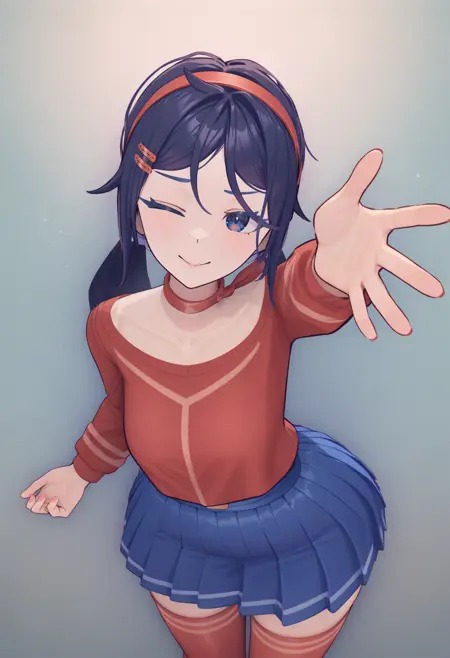 触发词:Mita。要触发她的服装:红色上衣、蓝色裙子、红色腿部服饰、蓝色鞋子