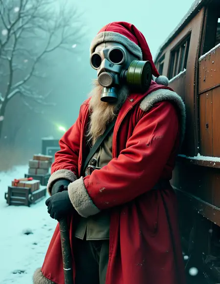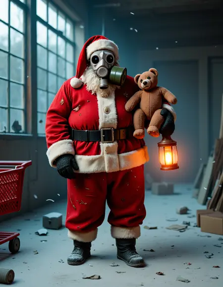 有时可能生成的结果中没有防毒面具滤芯,此时建议您在提示词中额外添加滤芯描述。