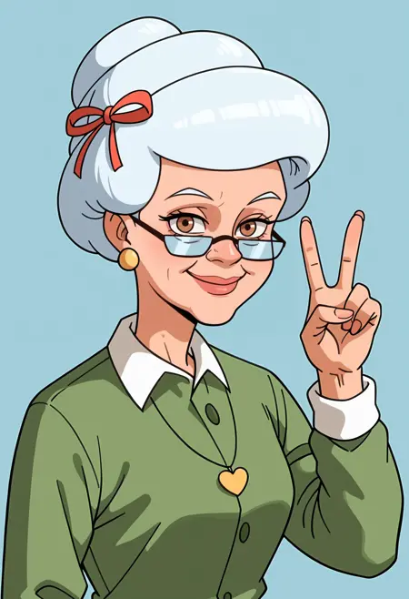 1girl, 白髪, 茶色の目, 高齢の女性, ピアス, メガネ, 髪飾り