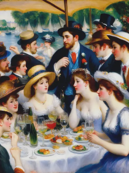 彼の描く対象には、風景、肖像、そして余暇を楽しむ人々の情景がよく含まれていました。ルノアールは、被写体の儚い瞬間と自然な優雅さを捉える特別な才能を持ち、絵画に喜びと生命力を込めました。