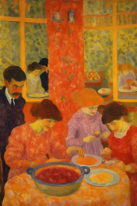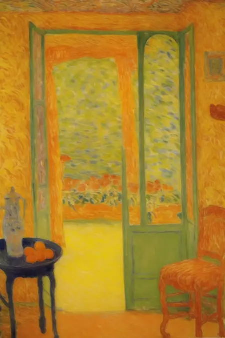 ボナールの特徴的な技法の一つは、明るく非伝統的な色の組み合わせを用いることであった。彼は豊かで鮮やかな色調を用い、自然主義的ではない色を意図的な気分や感情を喚起するために頻繁に使用した。ボナールの色の調和は深さと雰囲気を生み出し、作品に温かさと輝きを湛えている。