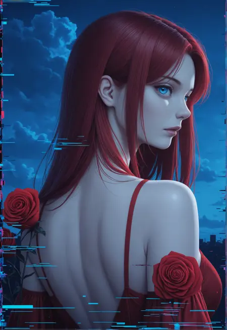reij-incs, silhouette character, black ink, neon colors, colors splash effect, flowing hair
