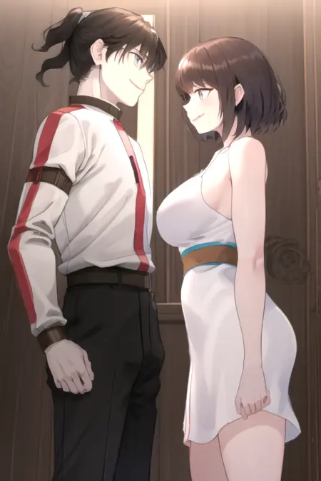 BamAndrossi, a man and a woman, hetero, standing, smile, cowboy shot
