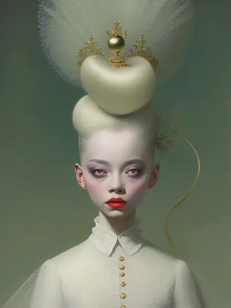 カイサーの芸術は主にデジタル技術を用いて制作され、デジタル絵画、3Dモデリング、写真操作を組み合わせています。彼の作品には、繊細で磁器のような人物、しばしば少女や女性が、装飾的でファンタスティックな背景の前に描かれます。これらの人物は、脆弱さと強さの独特なバランスを持ち、複雑な感情と物語を伝えています。