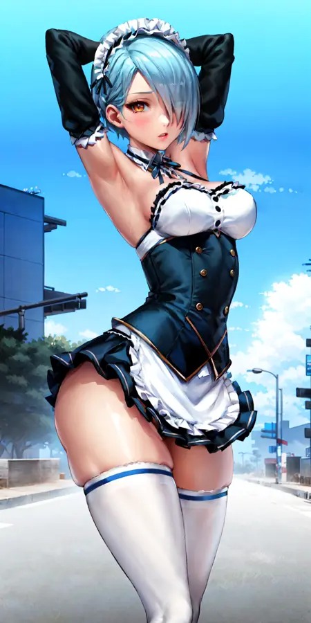 主要标签:jodie,橙色眼睛,蓝色头发,短发,头发遮住一只眼睛。