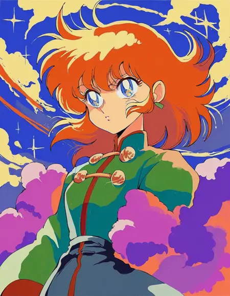 触发词为by Hariken Ryuu。在标注数据集时,标签1980年代(风格)、复古艺术风格也频繁出现。