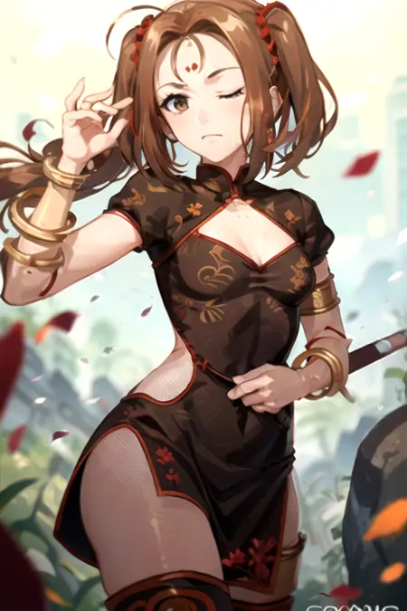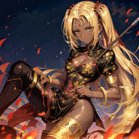 | 训练词汇 | 1girl, solo, blonde hair, dark skin, dark-skinned female, forehead mark, fishnets, chinese clothes, china dress, thighhighs, polearm,已复制! pretty asian girl, 1girl, solo, brown hair, forehead mark, chinese clothes, polearm, china dress, fishnets, facial mark, thighhighs,已复制! |