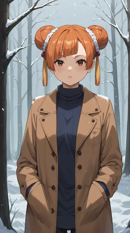orange hair, double bun, blunt bangs, brown eyes, tassels, hair ornaments, halterneck, blue dress, detached sleeves, bridal gauntlets, chinese dress, blue elbow gloves, blue boots, knee boots, bare shoulders, fingerless gloves