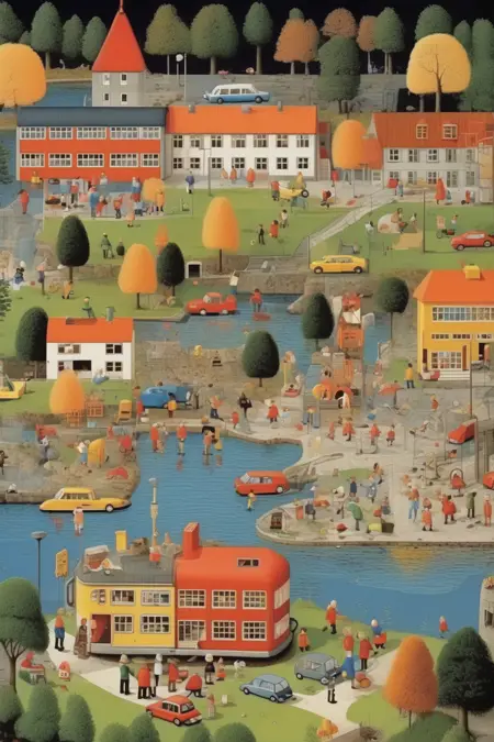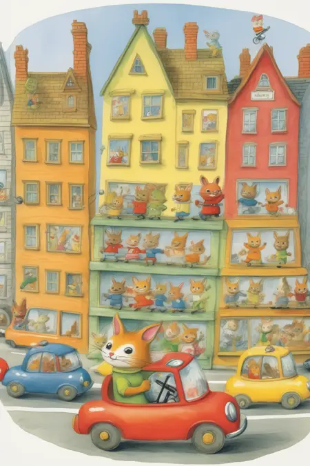 スカリーのイラストは、日常の光景を色彩豊かで細部まで丁寧に描いたものが特徴です。にぎやかな都市からのどかな田舎の風景まで、彼のイラストにはさまざまな活動に従事する魅力的な動物たちが満ちあふれています。彼の細部へのこだわりと、各キャラクターの本質を捉える力によって、物語は生き生きと描かれ、若読者に親しみやすくなりました。