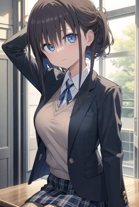 blazer, jacket, pantyhose, plaid, plaid skirt, pleated skirt, school uniform, skirt, thighhighs, uniform, vest