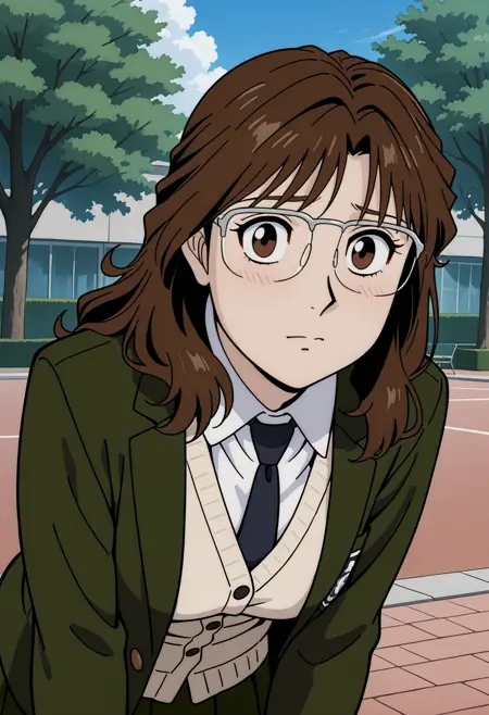 ipporeikomikami,长发,棕色头发,棕色眼睛,眼镜,框式眼镜 —— 她在动画中戴眼镜,但你可以省略这两个眼镜标签,依然能完美生成她不戴眼镜的样子。