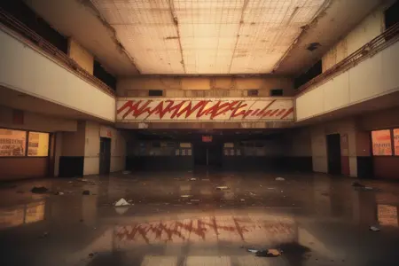 このモデルは、1990年代初頭のこうした衰退したミッドタウンの建物の写真を学習して訓練されており、その時期特有の粗末な装飾、閉鎖された店舗、ネオンに染まった粗末な雰囲気を捉えている。