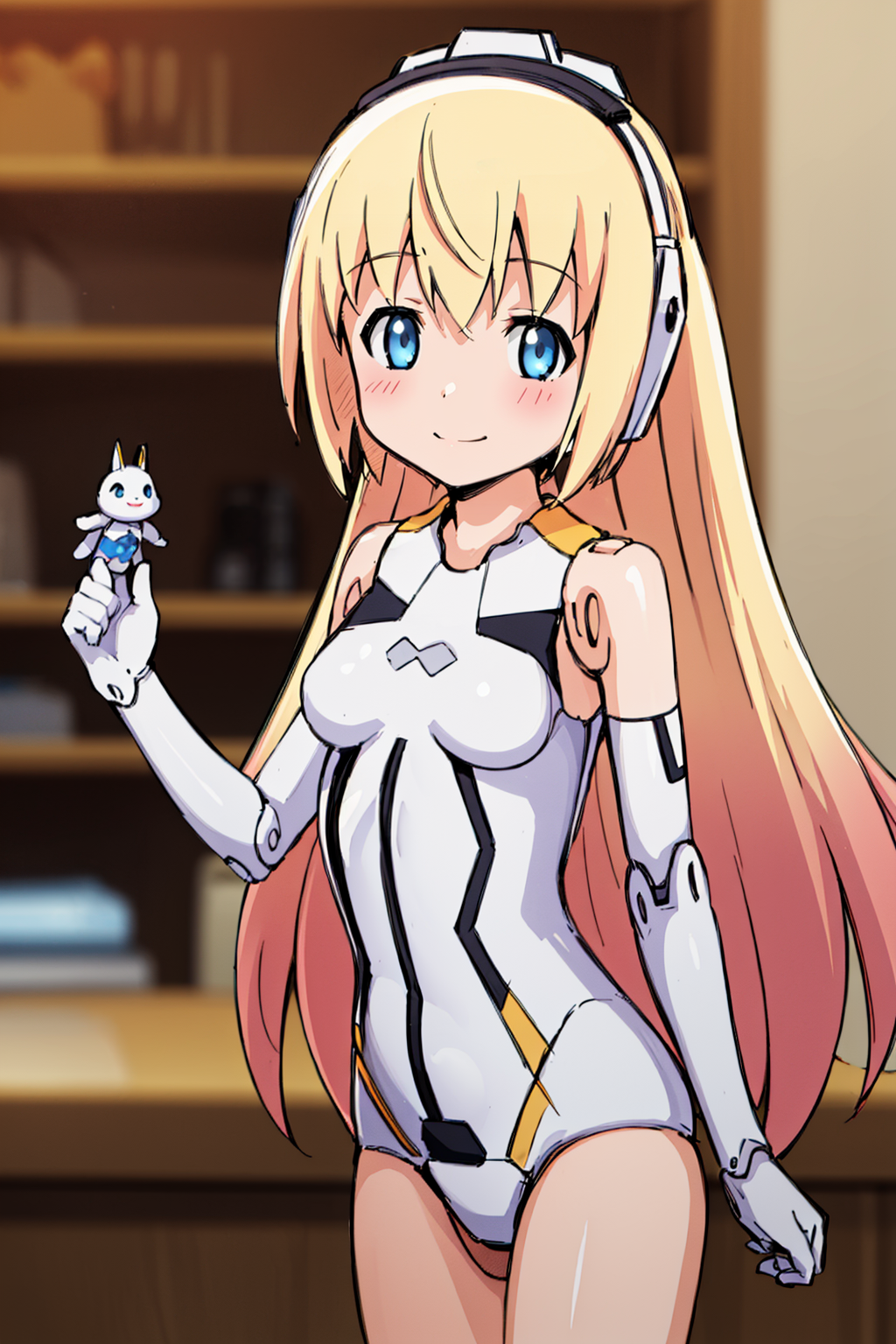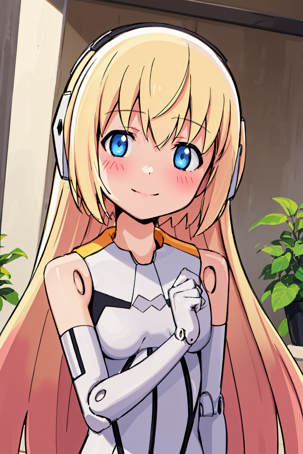 예: 1girl,solo,blonde hair,long hair,blue eyes,joints,doll joints,gloves,bangs,bare shoulders,smile,multicolored hair,elbow gloves,gradient hair,very long hair