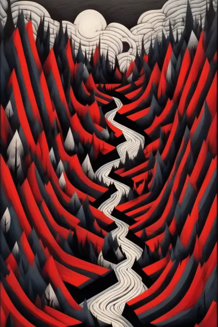 ドノウがラジオヘッドと最も有名に協業した作品の一つが、アルバム『OK Computer』のジャケットアートである。これは、ひどく歪んだ高速道路のジャンクションを描いた印象的なイメージで、テクノロジー、孤独、現代の不安というアルバムのテーマを完璧に捉えている。