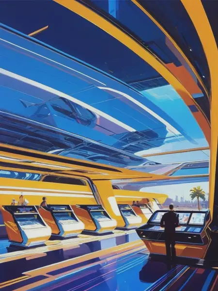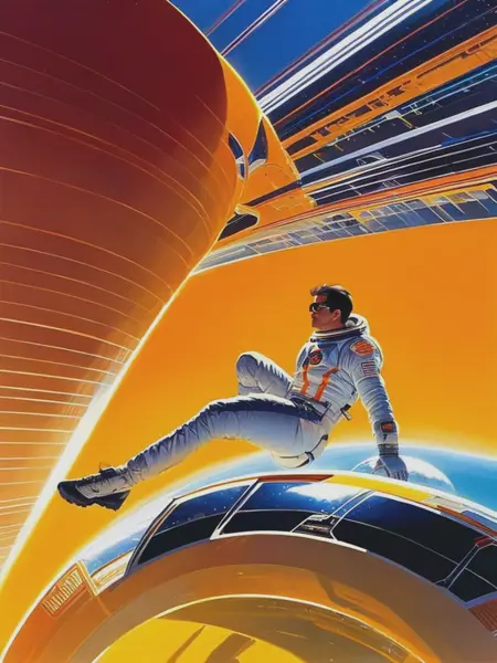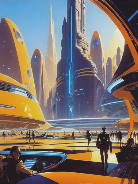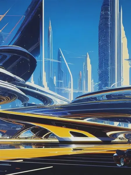 Mead's style is characterized by his ability to envision futuristic landscapes, vehicles, and technologies that are both innovative and aesthetically captivating. His designs often feature sleek, streamlined forms, bold use of color, and a meticulous attention to detail. Mead's work combines elements of realism and fantasy, resulting in a unique blend of visionary concepts grounded in practical functionality.