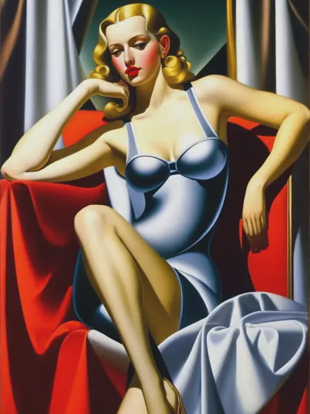 De Lempicka's portraits often featured strong and confident women, depicted with elongated figures, sharp lines, and vibrant colors. Her subjects were often glamorous and seductive, reflecting the spirit of the era. Her use of bold brushstrokes and geometric shapes created a sense of dynamism and energy in her compositions.