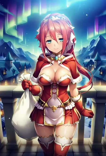 推荐提示词(角色):Krdia,1girl,solo,medium breasts,bare shoulders, navel,green eyes,ponytail, hair between eyes, ribbon, crown, detached collar, hair bow,