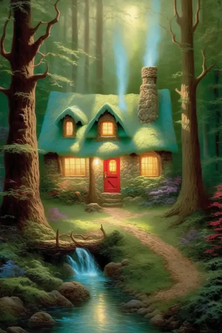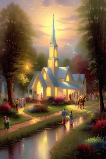 トーマス・キンケードは「光の画家」として知られるアメリカの芸術家で、風景、コテージ、そして心温まる場面を理想化され、ロマンチックに描くことで有名である。彼の絵画はプリントとして広く複製・配布され、巨大な人気を博した。