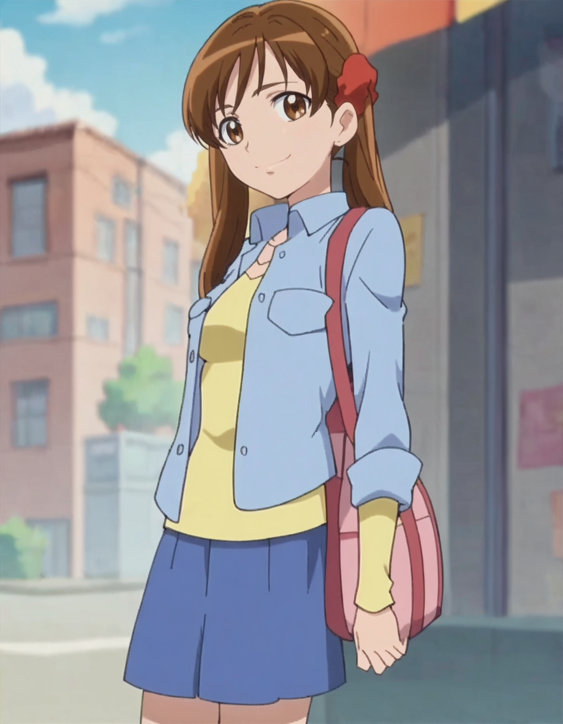 score_9, score_8_up, score_7_up, anime screencap, 1girl, solo, sakagamiayumi, skirt, blue skirt, long sleeves, yellow shirt, blue jacket, lora:sakagamiayumi:0.8