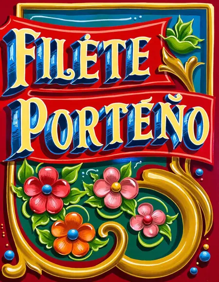 Fileteado porteño is a traditional decorative art style from Buenos Aires and Rio de La Plata, known for its ornate flourishes, vibrant colors, and stylized lettering.