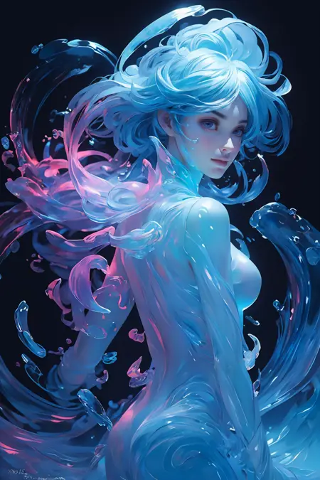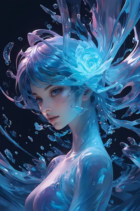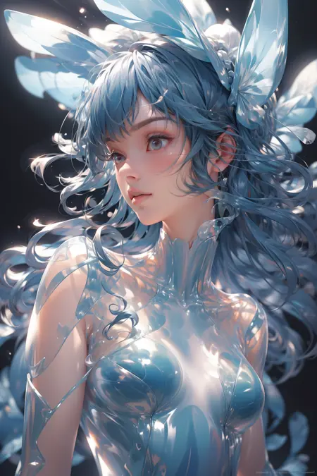 이것은 텍스처 LORA입니다: 홀로그램 블루, 반투명, 피부 코팅.