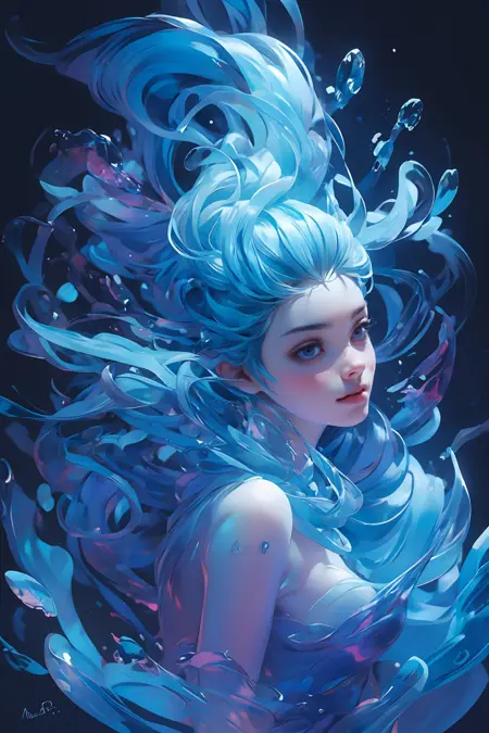 冰과 같은 얼음계 LORA와 결합하면 화려한 파란색 얼음 의상을 얻을 수 있습니다.