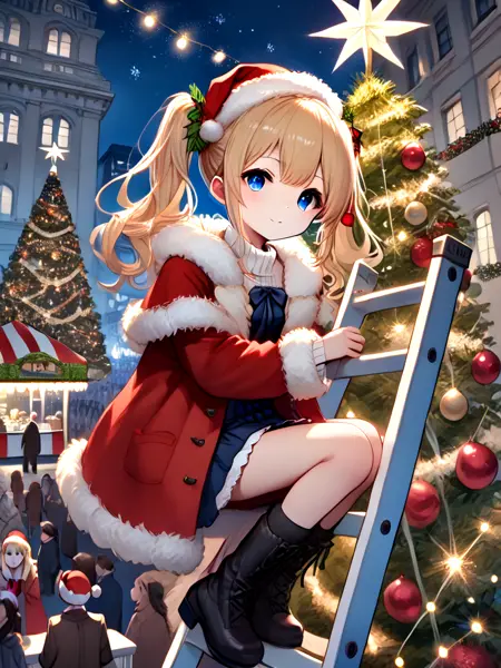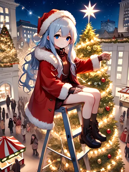 참고: 성공률이 절반 미만이며, 계단이 매우 불안정하고 크리스마스 트리가 돌아다닙니다. 그녀는 헤어스타일을 바꿀 수 있습니다. (Pony 및 ILXL 및 FLUX)