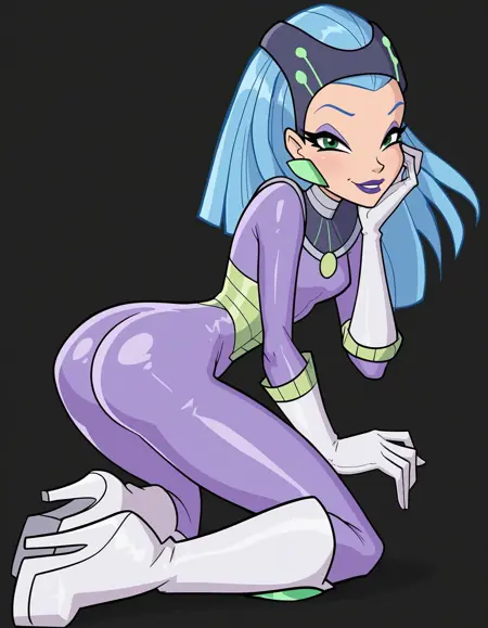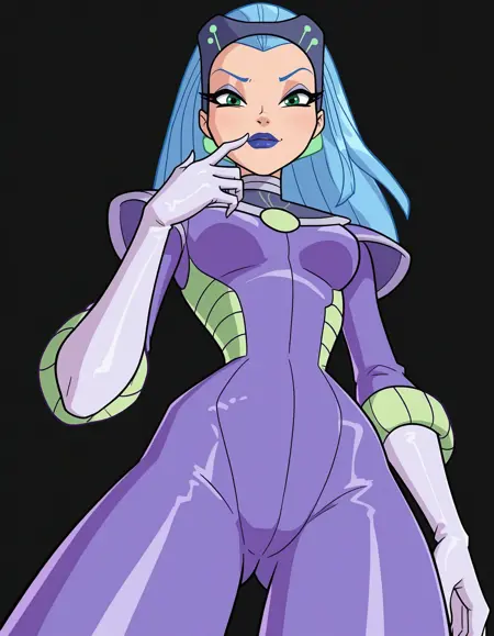 xmagnethiax, blue hair, long hair, green eyes, hairband