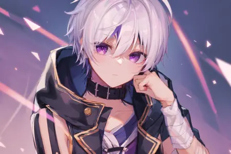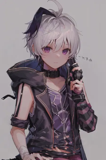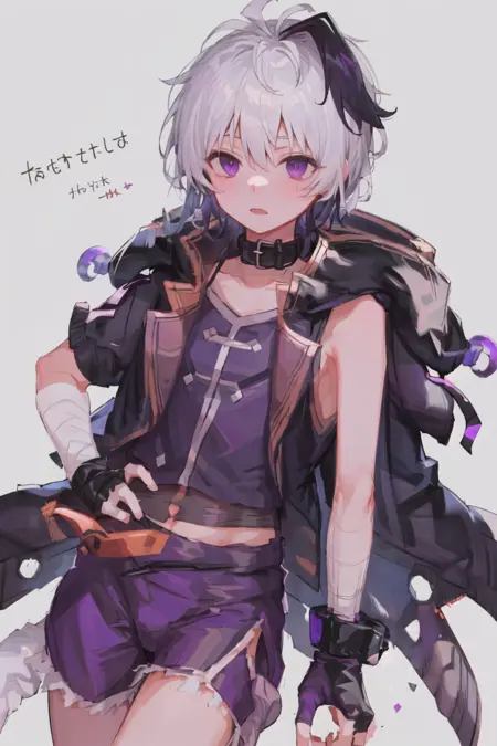 注:需要添加“purple hair”这一提示词,因为某些模型会将头发画成纯白色。