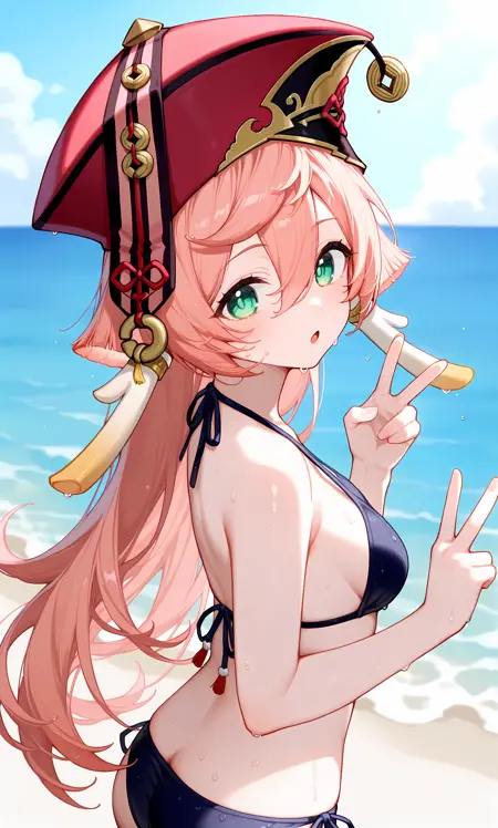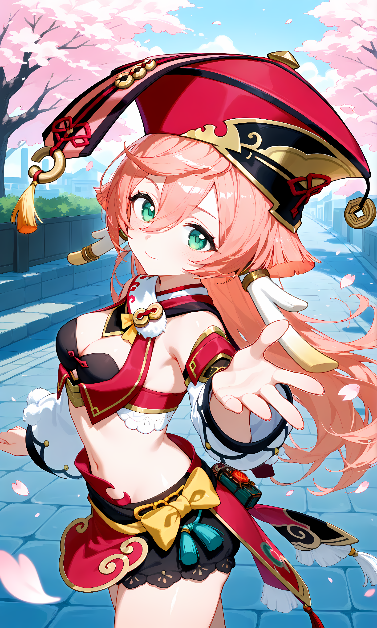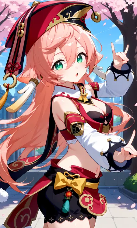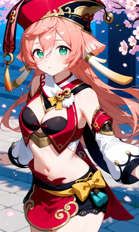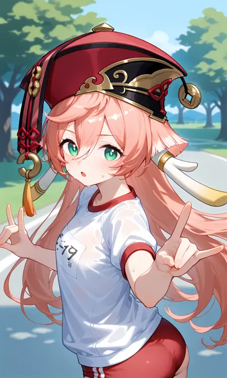 yanfei (genshin impact), 분홍색 머리, 뿔, 녹색 눈, 눈 사이의 머리카락, 사슴뿔, 매우 긴 머리