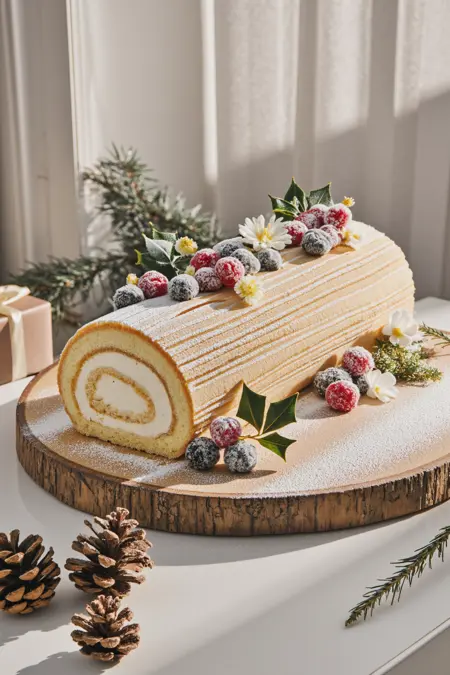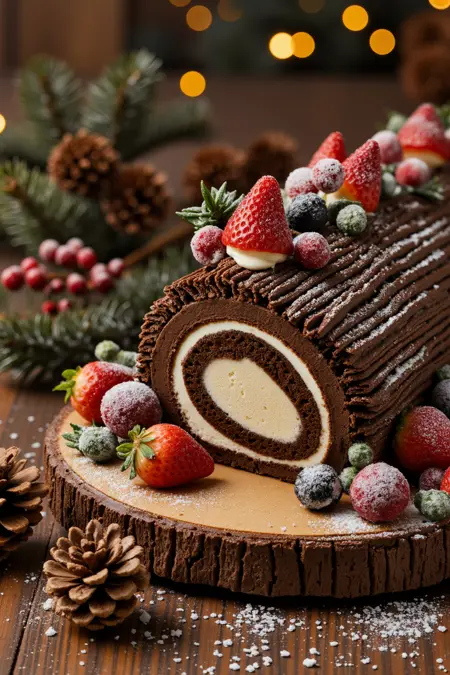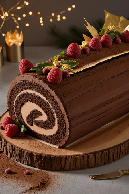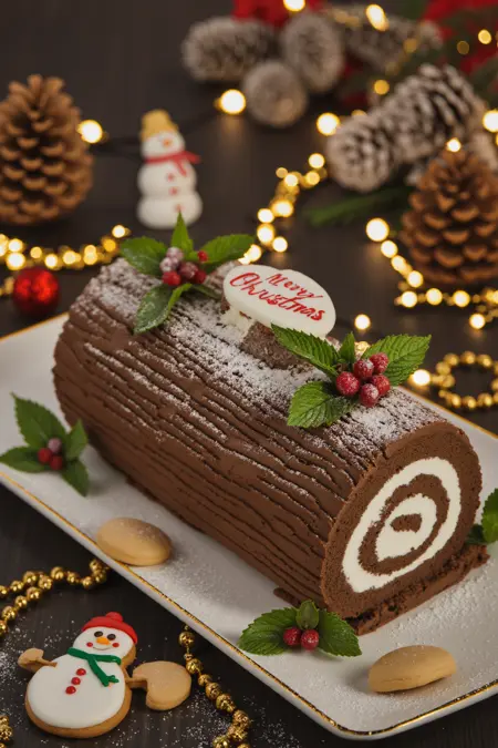Option: If the cake's color or shape doesn't closely resemble a log cake, adding terms such as "spiral, bark, icing, cream, chocolate" can help improve the outcome.