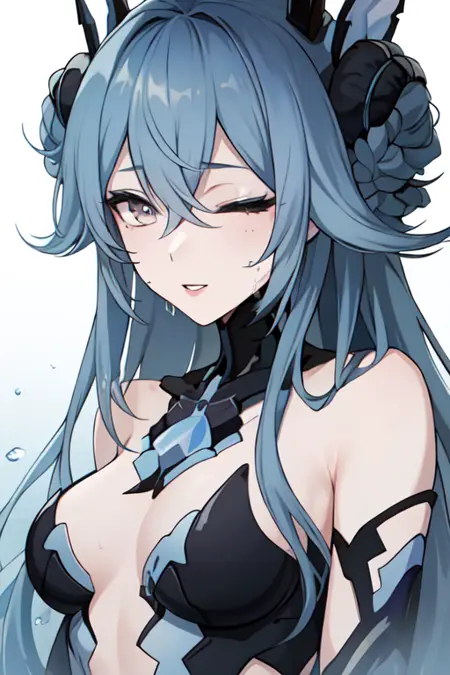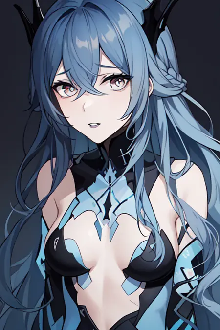 要生成该角色,请输入:“lora:LamiaPGR:strengthLamiapgr, 蓝色口红, 蓝色眼线, 符号形状的眼睛, 多彩头发, 分离式衣领, 粘性胸衣, 头部鳍, 肘部手套,”。可使用“美人鱼尾巴”来生成她的尾巴。