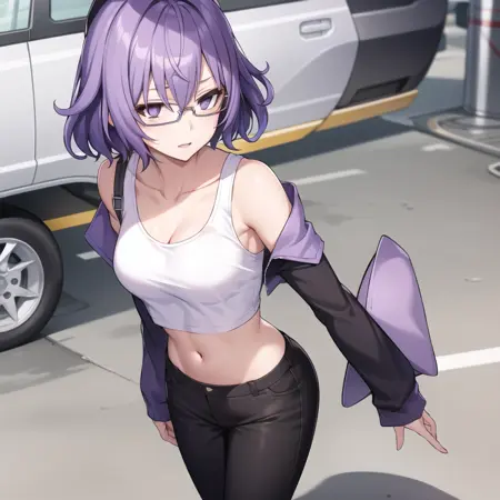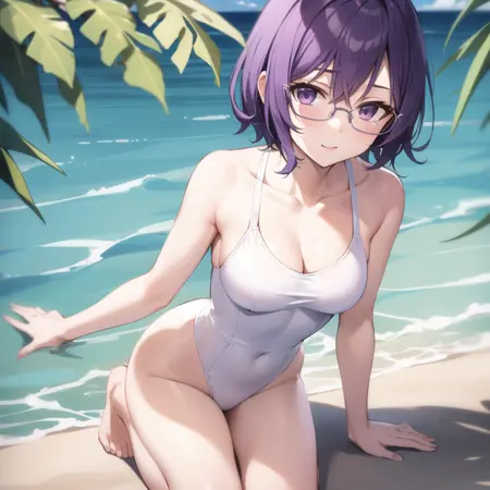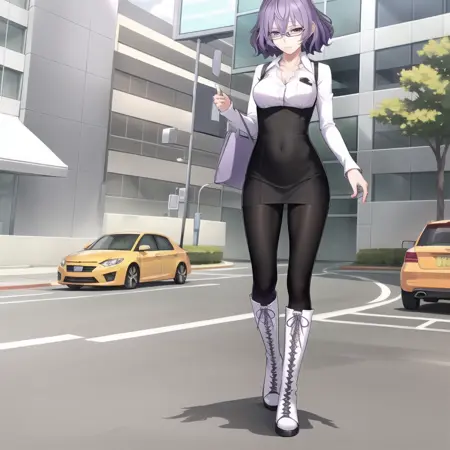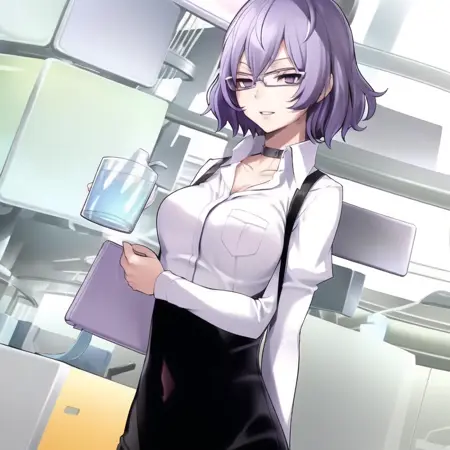 트리거 단어: dscs-mirei, 드레스, 단발, 보라색 머리, 안경