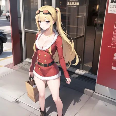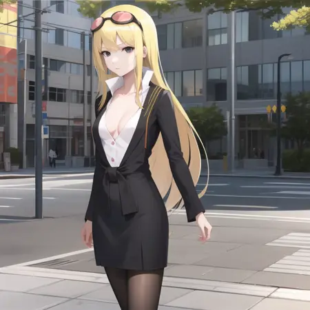 Trigger Word: dscs-kyoko, white jacket, short shorts, scarf, open clothes, blonde hair, long hair