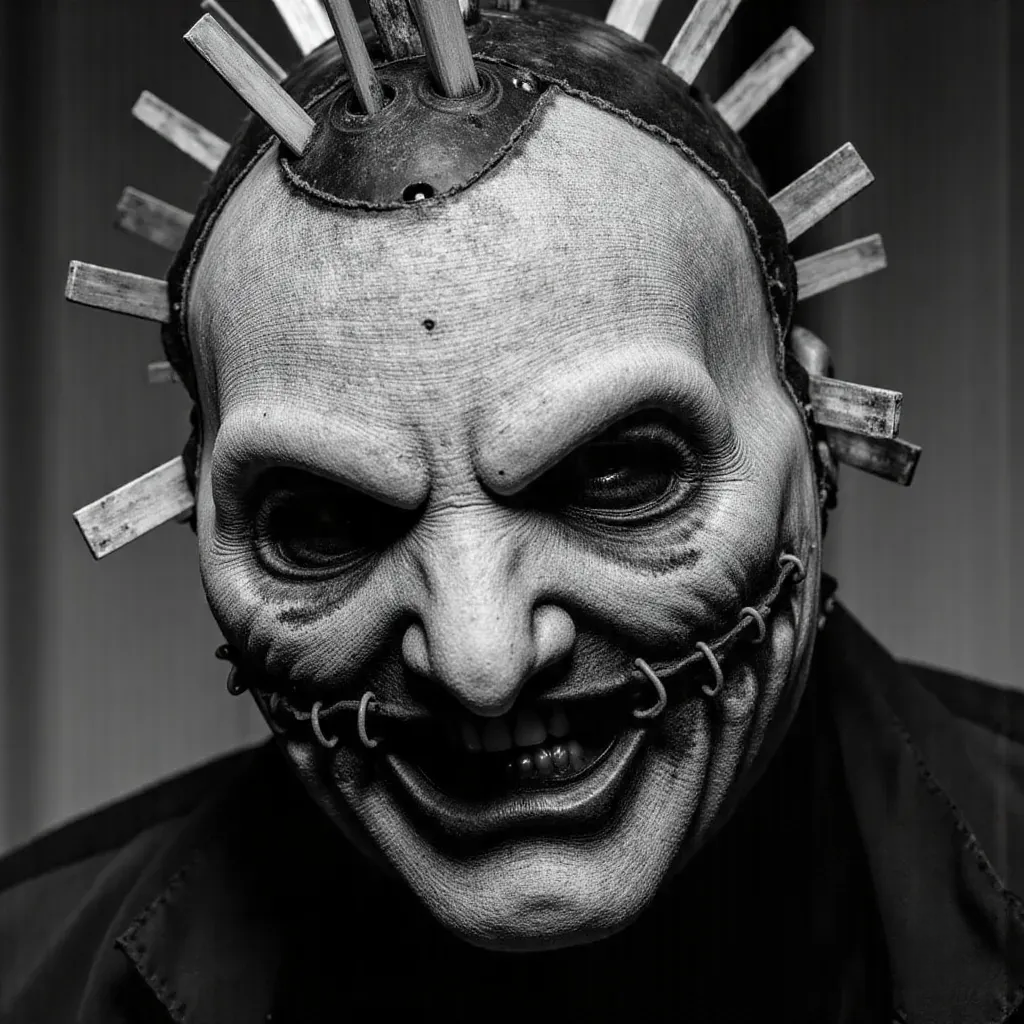 我尝试制作一个LoRA,用于以Slipknot乐队成员的风格生成面具。有时它只会生成没有面具的脸,这会让人感到相当诡异。