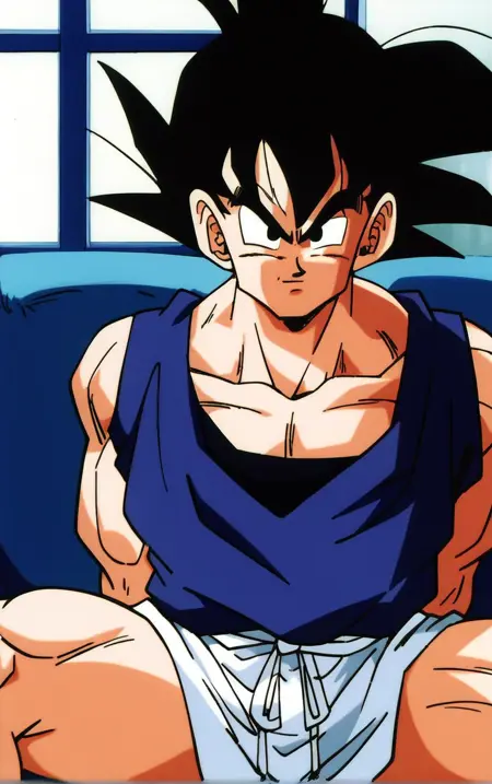 1boy, male focus, black hair, black eyes, spiked hair, son goku,