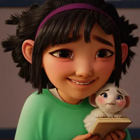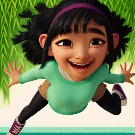 飞飞,飞奔去月球,参差不齐的黑发,棕色眼睛,紫色发带