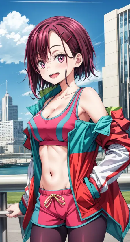 다른 하나는 가끔 배경에 다른 캐릭터가 나타나는 것입니다(즉, 무작위 캐릭터의 흰색 컷아웃이 나타남). 하지만 이는 매우 드물며, 약 100번 중 단 두 번만 발생했습니다. 그리고 그녀의 재킷을 제거하고 싶다면 네거티브에 포함하거나 "裸臂" 같은 프롬프트를 사용하세요. 원한다면 강도를 낮출 수 있습니다. 그녀의 외모는 0.7에서도 매우 일관되지만, 그 이하로는 테스트해보지 않았습니다. 0.6까지, 심지어 0.55까지도 잘 작동할 것이라 생각합니다.