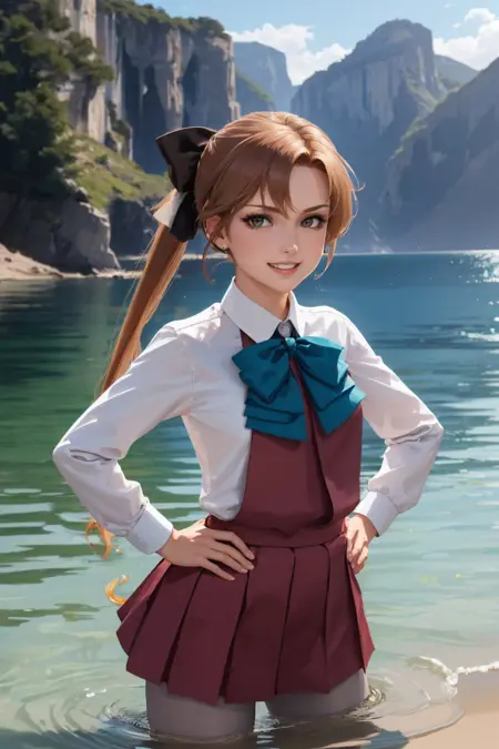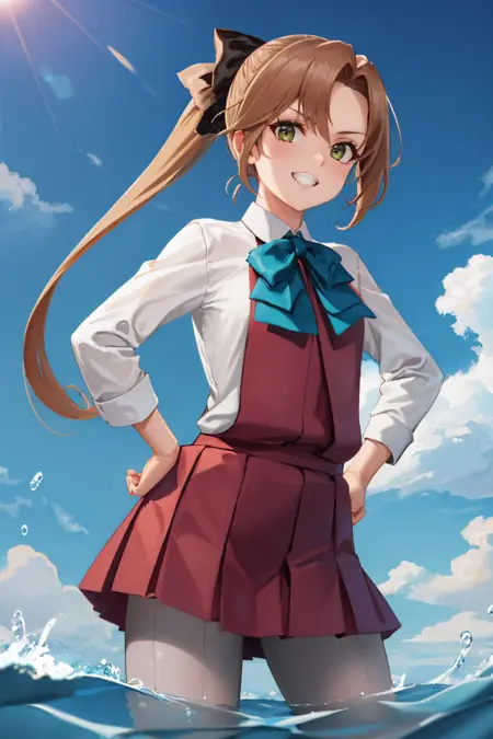 デフォルトの服装: 制服, シャツ, ボー, スカート, グレーのパンティストッキング