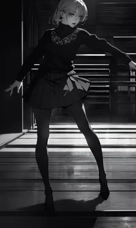 융합 중 우연히 얻어진 결과는 원본 모델의 평면 레이어를 호출한 것으로 보입니다. 캐릭터는 평면적으로 페인트된 스타일이지만, 배경은 문라이트 믹스를 계승했습니다.