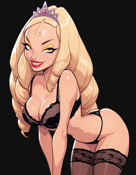 xdiasprox, blonde hair, long hair, yellow eyes, drill hair, tiara