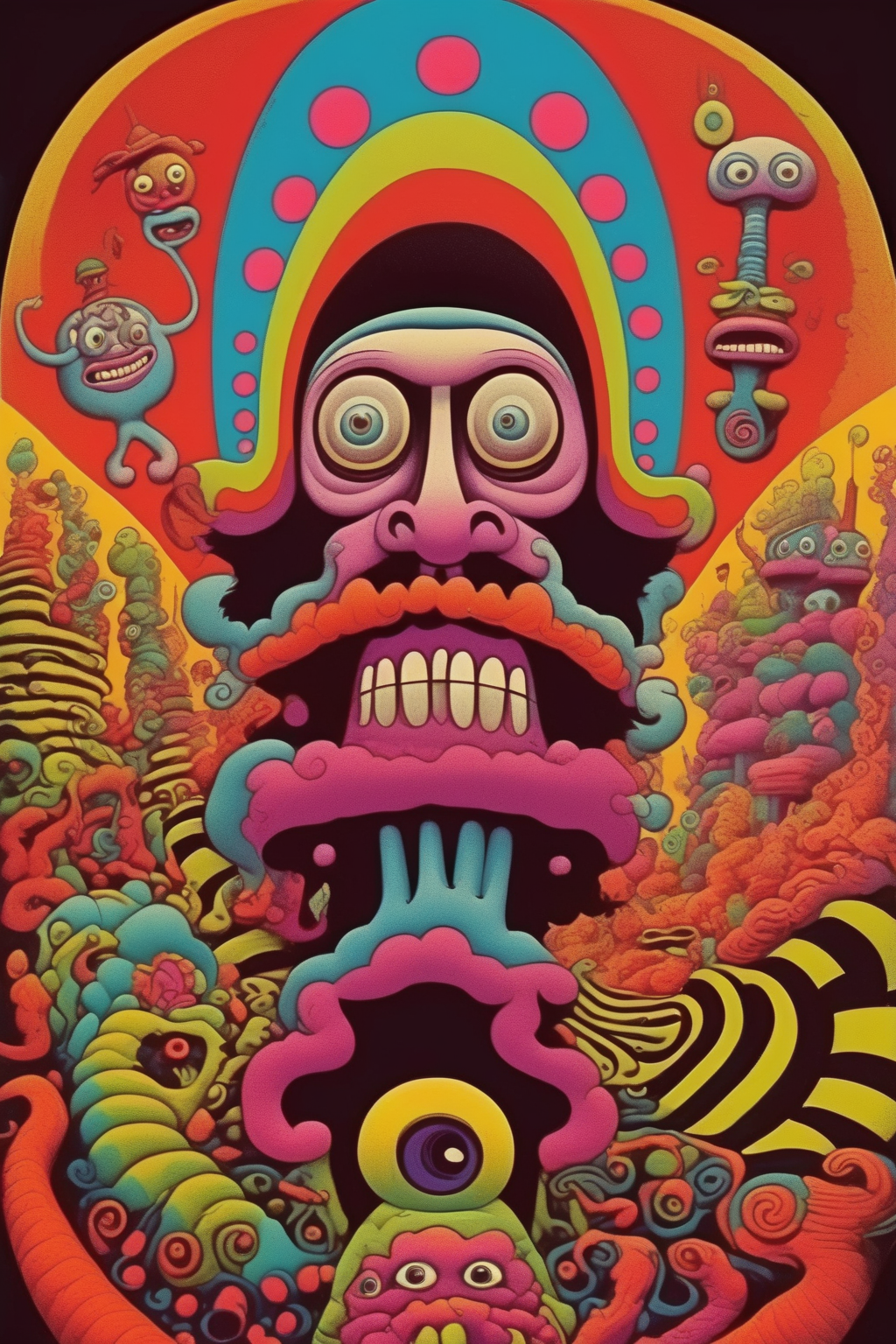 In addition to his poster art, Moscoso also ventured into other artistic mediums, including painting and comic book illustration. His paintings often carried the same psychedelic aesthetic, with swirling forms and vibrant colors.