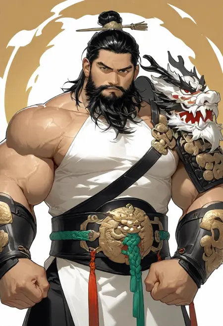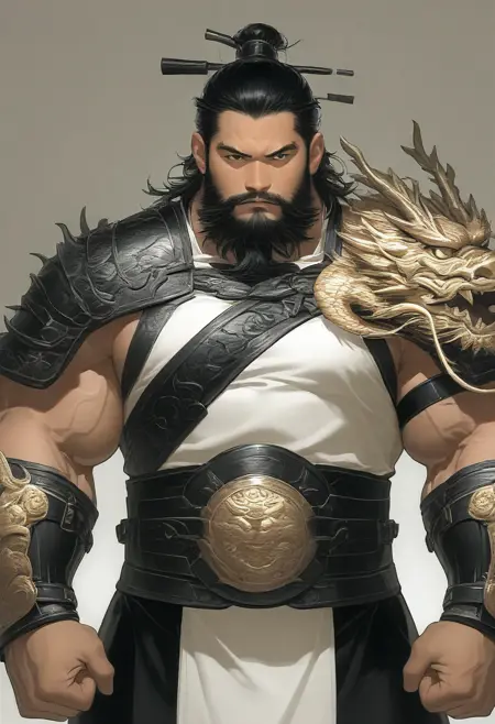 您可以通过提示词调整想生成的服装,包括肩甲、护腕、腰带等元素,具有浓厚的中式风格服饰。