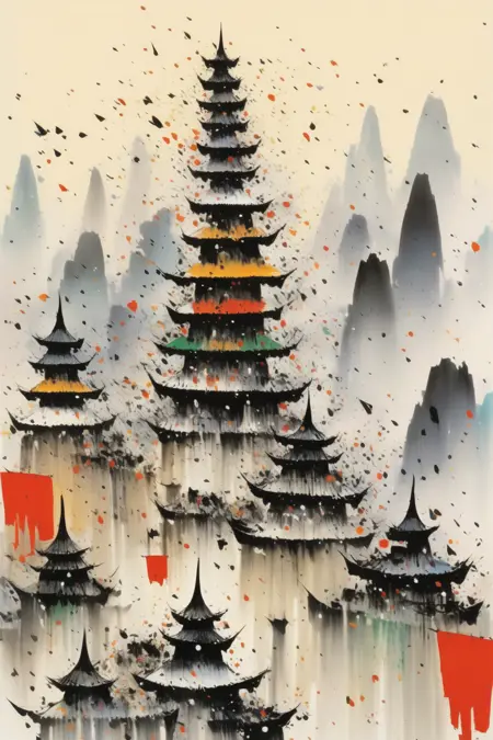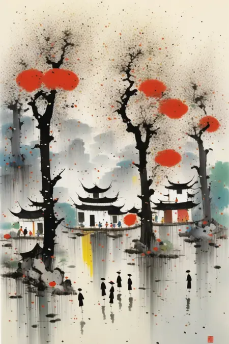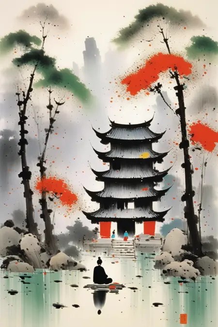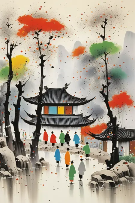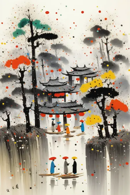 One of his notable contributions was his emphasis on capturing the essence of Chinese landscapes and architecture. Wu Guanzhong's landscapes often conveyed a sense of both grandeur and tranquility, portraying the harmonious relationship between humanity and nature.