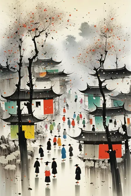 Beyond landscapes, he also depicted a wide range of subjects, including figures, still life, and cityscapes. Wu Guanzhong's artworks reflected his deep appreciation for the beauty of everyday life and his desire to convey the emotional and spiritual aspects of his subjects.