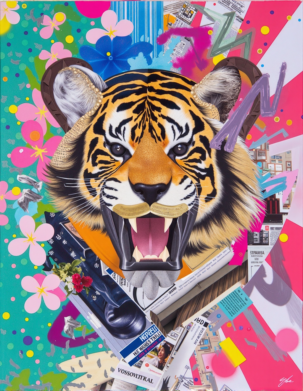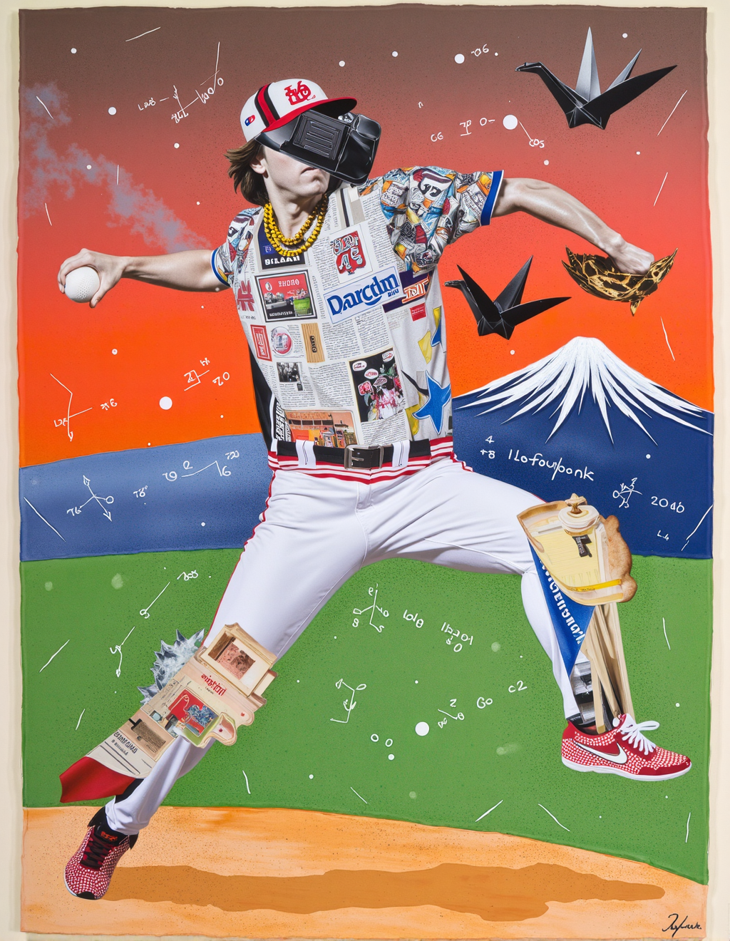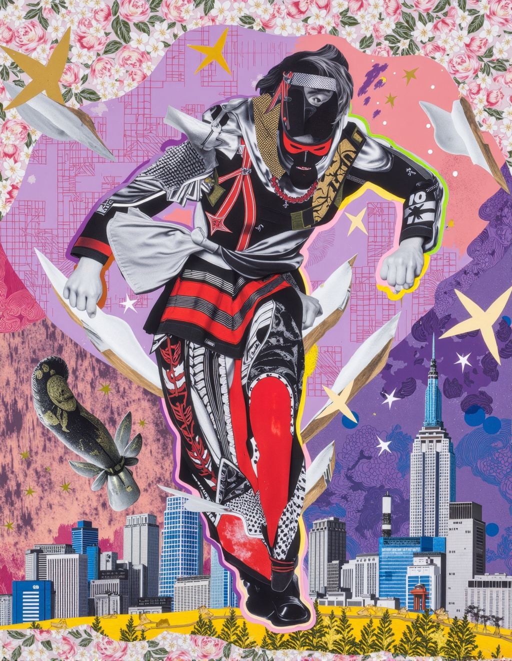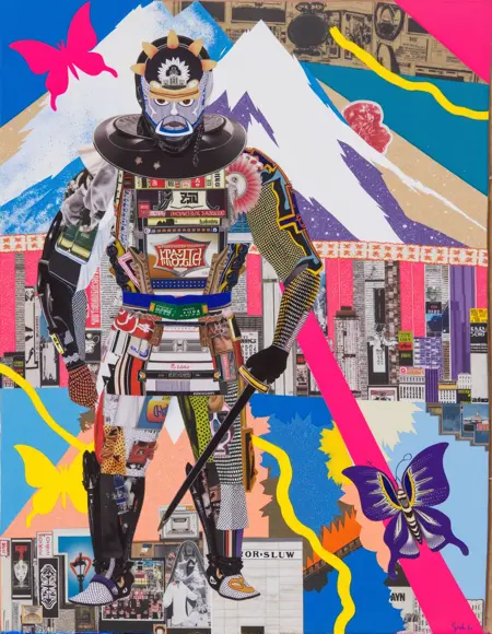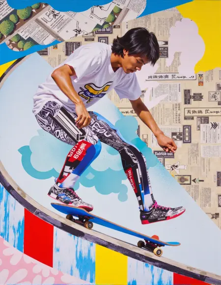 Nagao 的艺术充满趣味,颂扬日常生活。他的作品常融入日本文化元素,如传统图案、食物和流行偶像,体现出传统与当代影响的交融。