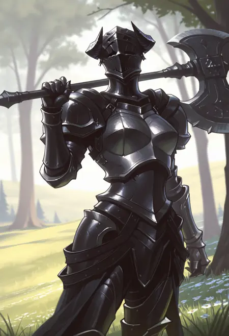 Armor: alb3doarmor, black armor, full armor, helm, black horns, demon horns, shoulder armor, pauldrons, boobplate, gauntlets