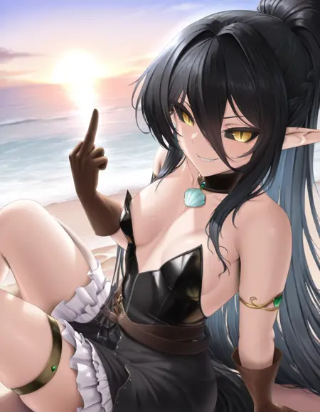It's focus is on digitally painted anime-style with an emphasis on intricate detailing, vibrant coloring, and polished textural effects.