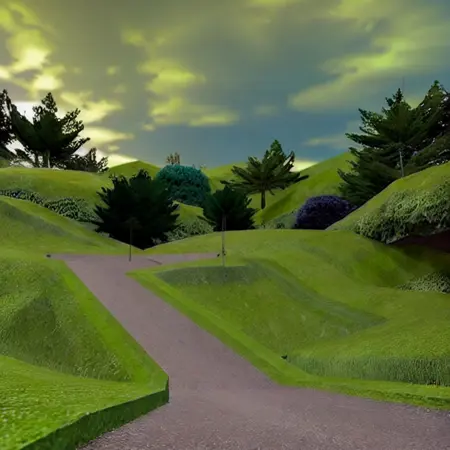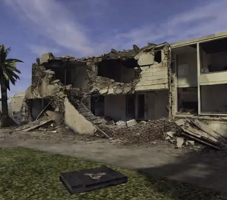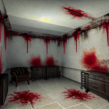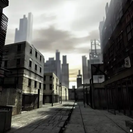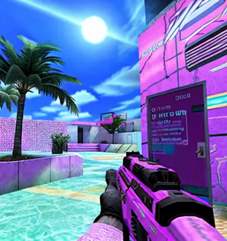 낮은 퀄리티의 텍스처를 가진 로우폴리 배경 및 환경. Counter-Strike 맵의 1x1 스크린샷으로 학습됨.